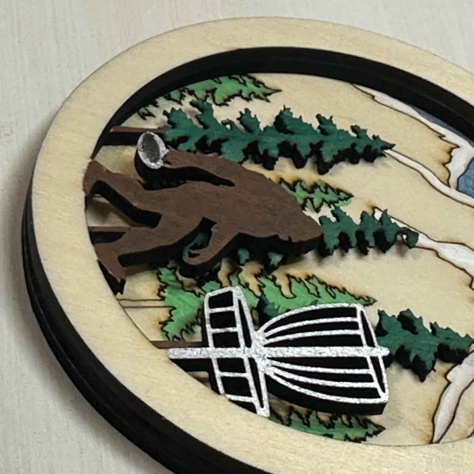 DISC GOLF Basket Sasquatch Ornament 3 Layer Wood Discgolfer Christmas Gift