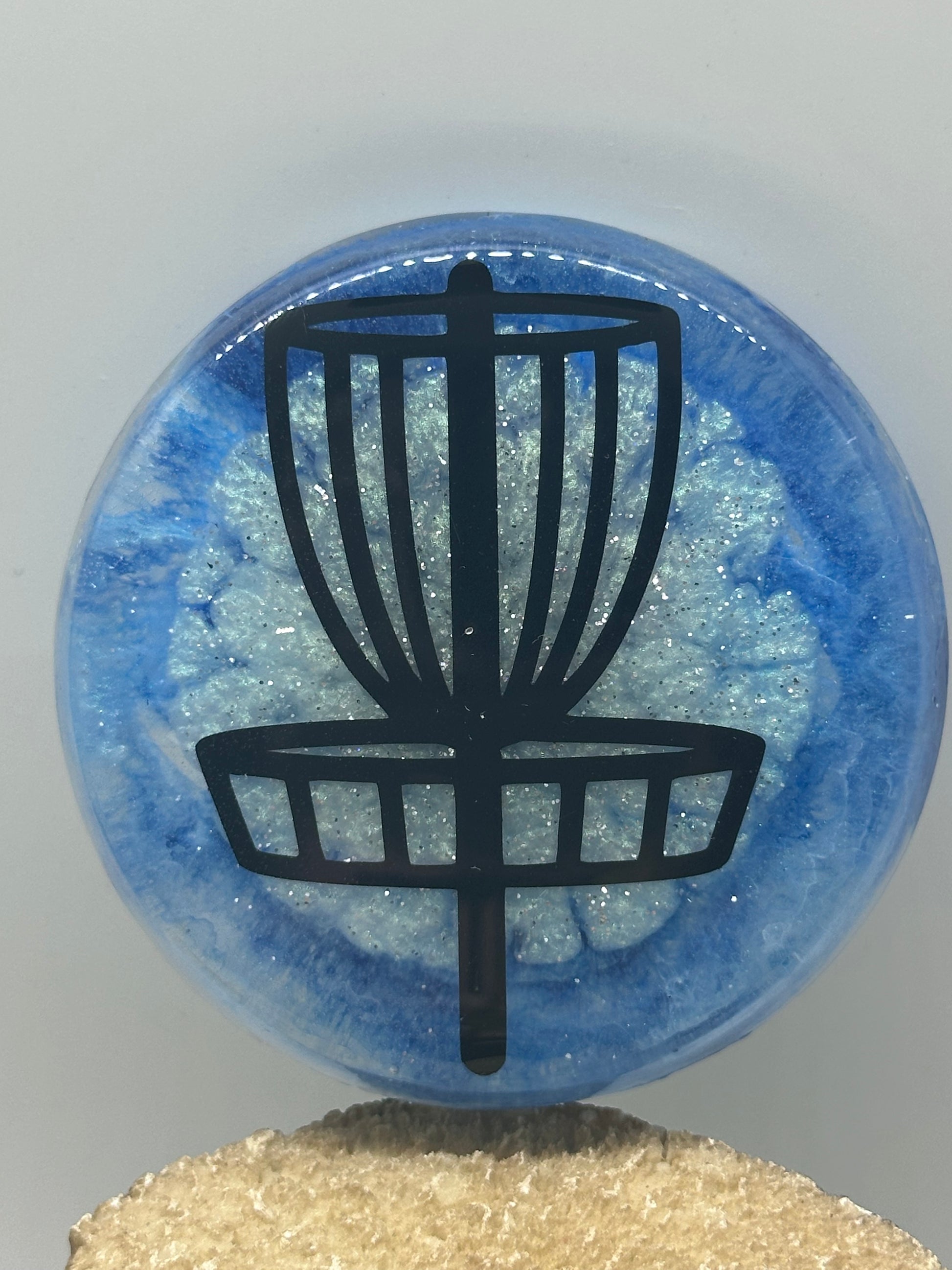 Disc Golf Mini Marker Custom Blue w/ Black Disc Basket Epoxy Resin One Of A Kind Mini