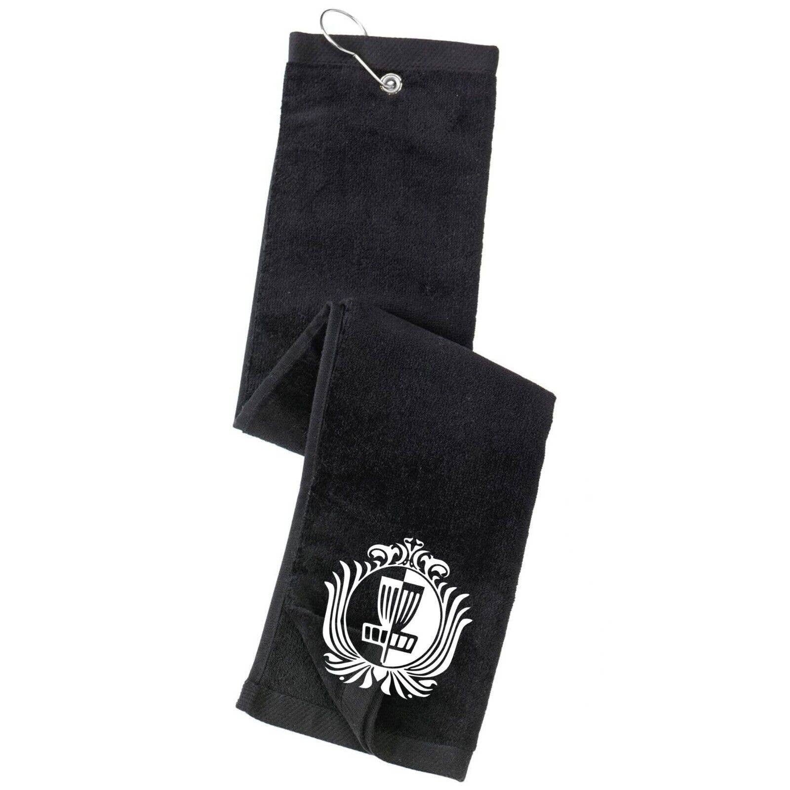 Disc Golf Towel Tri Fold Custom DISC GOLF CREST Grommet Clip On Sports Towel